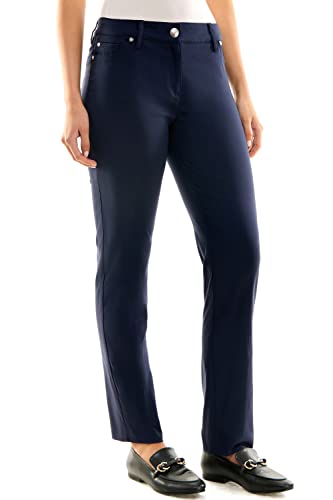 Zac & Rachel Dra-på-byxor för kvinnor gjorda av Millennium tyg – perfekt designad vävd stretch för den mest smickrande passformen, Marinblå kavaj, 46