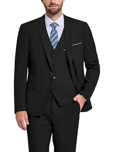 ECDAHICC Herr 3-delad kostym business en knapp smoking kostym för män smoking klassisk kavaj väst byxor set, svart, M