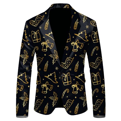 Sammet kavaj män brun kostymjacka herr 2025 gåva herr enkel en knapp jul tryckt vardaglig kostym jacka trendig och smal passform kavajer för män, Svart, XL