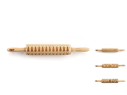 Fackelmann 3154450 kavel i trä, mönstrad kavel, gran, stjärna, snöflinga, trä, 39 x 6 cm