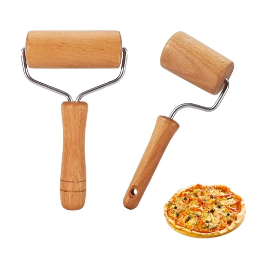 Set med 2 kavel små, 1 liten och medelstor kavel typ Y och typ 7, kavel trä med handtag, för manuell rullning av deg, pizza, desserter och dumplingförpackningar