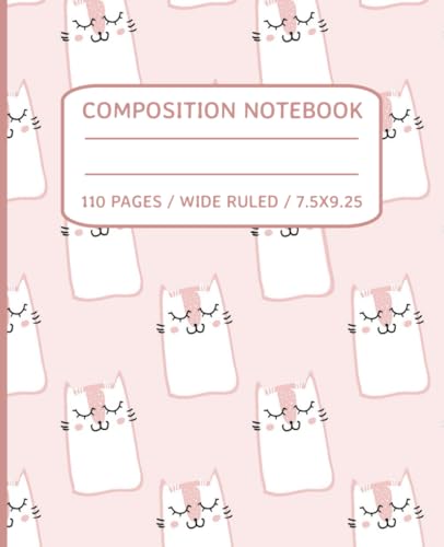 "Kawaii Cute Cat Composition Notebook for Girls – Wide Ruled, 7.5"x9.25", 100 Pages – School Notebook for Writing and Notes"