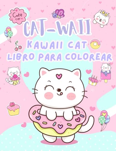 kawaii cat libro para colorear para niñas: 99 ilustraciones únicas, páginas para colorear de manera fácil y divertidas con lindos gatos kawaii, ideal para niños y adultos o aliviar el estrés