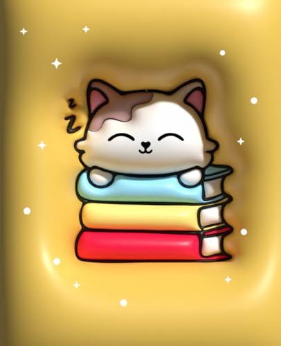 3D Inflated Kawaii Cat Sleeping on Books Composition Notebook: Cute 7.5x9.25" Journal for School, College, & Daily Journaling | 110 Lined Pages