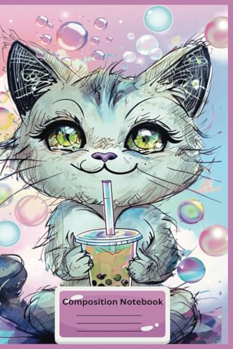 Kawaii Cat & Boba Tea Composition Notebook: Cute Kitty with Bubble Tea | Lined Journal for Writing, Journaling & Notes - 6 x 9 inches, 120 Pages