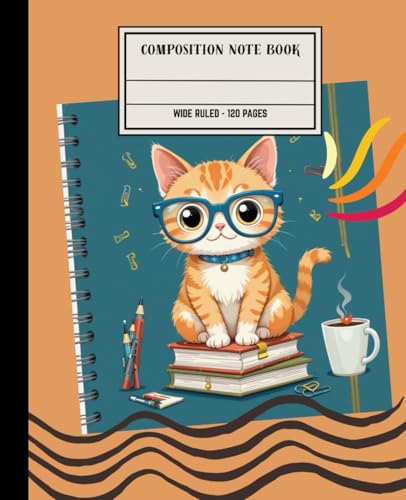 Composition Note Book: Kawaii theme - note book | Featured Kawaii Cat wearing Big Glasses Cover | Wide Ruled - 120 Pages - 7.5" x 9.25 "| For School, Kids, Girls & Boys
