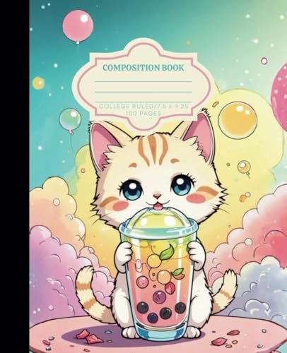 Composition Notebook College Ruled: Cute Kawaii Cat Aesthetic Preppy Journal | For Teen Girls: Very Cute Kawaii Style cat & Boba Tea Notebook! Cute ... | Lined Pages for Writing, Journaling & Notes