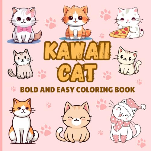 Kawaii Cat Coloring book: Easy and bold cute cat images for kids ages 4-8