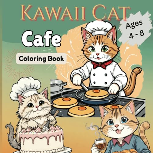 Kawaii Cat Cafe: Cute Coloring Book for Kids ages 4 - 8 ,Teens & young artists who loves kawaii | Adorable Cats serving and enjoying Sweet Treats in a Cozy Cafe Setting
