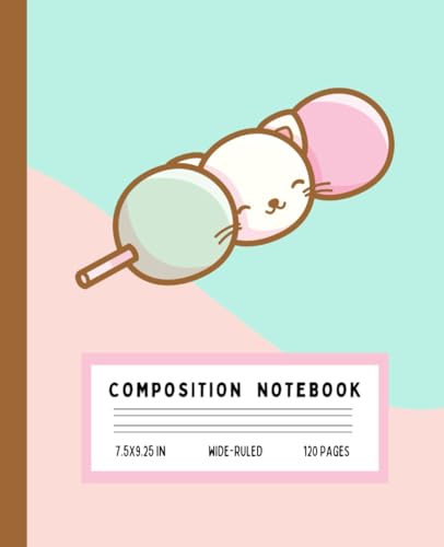Kawaii Dango Cat Composition Notebook: Cute Pastel Japanese Dango-Inspired Cat Design | Wide Ruled | Aesthetic 7.5" x 9.25" | 120 Pages for School, Journaling, or Gifts
