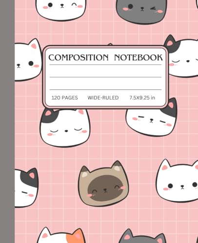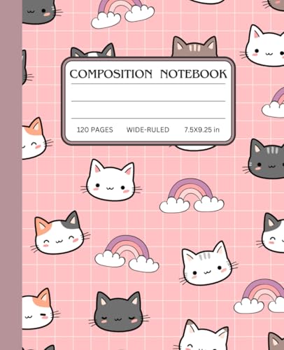Kawaii Cat Composition Notebook: Wide Ruled Notebook | 7.5" x 9.25", 120 Pages, Cute Pastel Cat Design, Perfect for School, Work, and Journaling
