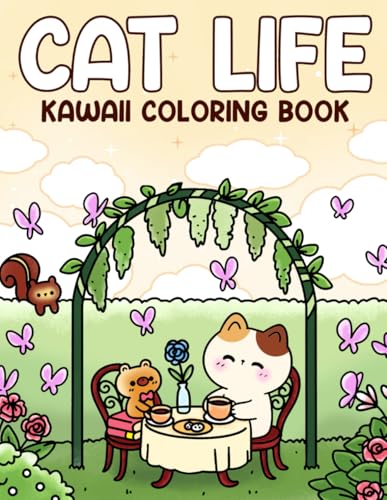 Kawaii Cat Life Coloring Book: Cute Cat Adventures in Delightful Designs and Adorable Animals Characters Coloring Pages for Kids & Adults Creative