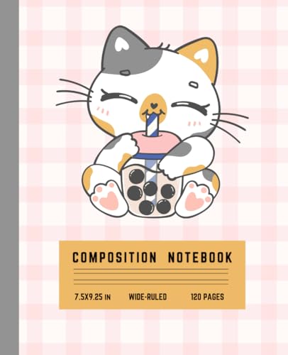 Kawaii Cat Boba Tea Composition Notebook – Wide Ruled, 120 Pages, 7.5x9.25 in – Cute School Journal for Girls, Teens, and Cat Lovers: Adorable Calico ... | Ideal for Notes, Journaling, or School