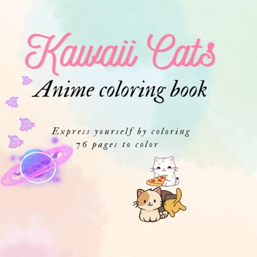Kawaii Cats coloring book for adults and children - Coloring pages with funny cats depicted: 76 KAWAII ANIME CAT BOOK TO COLOR FOR RELAXATION
