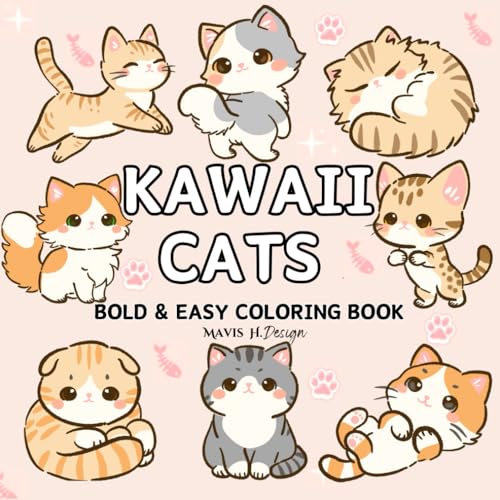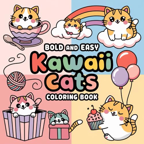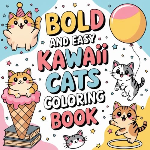 Cute Kawaii Cat Bold & Easy Color Book