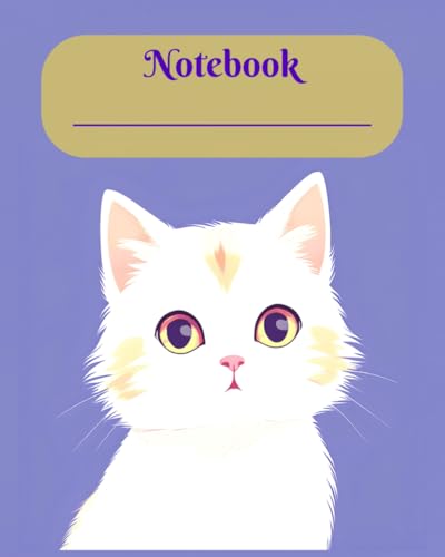 White Cat Notebook- Cute Pastel Purple Kitty Cat Theme Stationery for School & College | kawaii cat diary: 8x10 inch | 110 wide ruled Pages | ... | Journal for girls, cat lovers and students