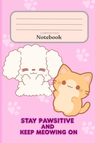 Cute Notebook: Adorable Kawaii Cat and Dog Composition Notebook Journal |120 Lined White pages (6x9 in)