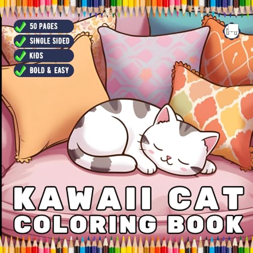 Cute Kawaii Cat Coloring Book for Kids Boys Girls Teens Youth 50 Pages Single Sided Kawaii Kitten Coloring Sheets for Children Cat Kitten Kitty Lover ... Book Stress Relief Relaxation Coloring Book