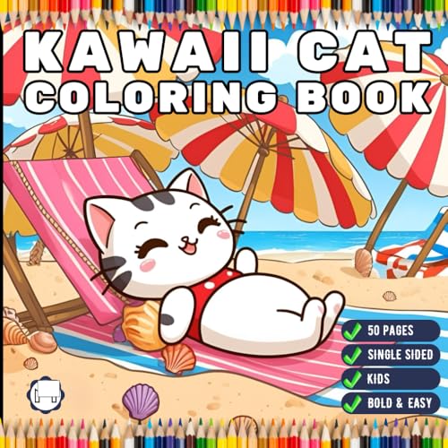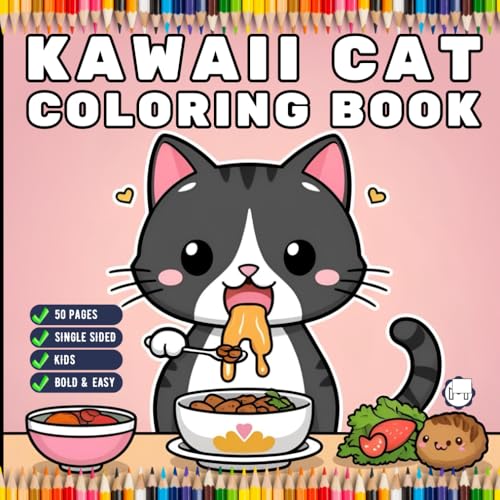 Cute Kawaii Cat Coloring Book for Kids Boys Girls Teens Youth Stress Relief Relaxation Coloring Book 50 Pages Single Sided Kawaii Kitten Coloring ... Pages Bold and Easy Simple Cat Coloring Book