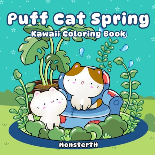 Puff Cat Spring: A Kawaii Cat Coloring Book for Relaxation with Simple and Cute Illustrations for Adults and Teens