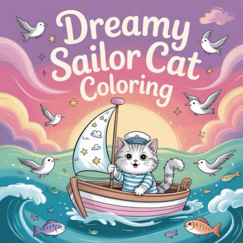 Dreamy Sailor Cat Coloring: Adorable kawaii sailor cat adventures for relaxing creativity and joyful coloring moments.