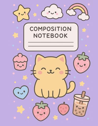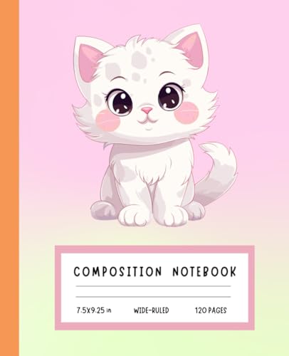 Kawaii Cat Composition Book – Cute Pastel Animal Writing Pad for School, Doodles, and Stories (120 Pages, 7.5 x 9.25 in, Wide Ruled): Adorable ... Kids, Sketching, Homework, and Fun Ideas