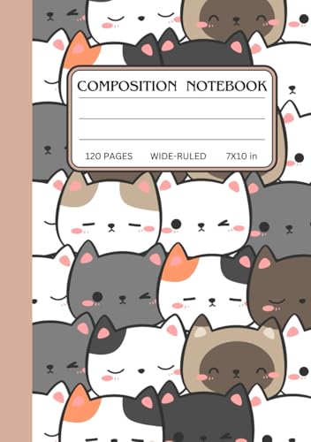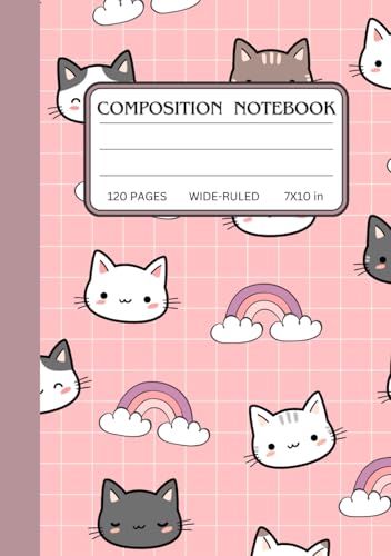 Kawaii Cat Composition Notebook: Wide Ruled Notebook | 7" x 10", 120 Pages, Cute Pastel Cat Design, Perfect for School, Work, and Journaling