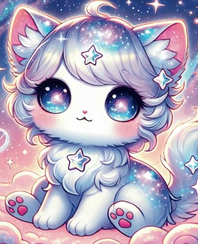 Amaxiu-paket med 50 Kawaii Starry Sky Cat-klistermärken, Cute Animals Cat-dekaler, estetiska dekaler, vattentäta vinyldekaler för dator, bärbar dator, scrapbooking, planerare, dagböcker