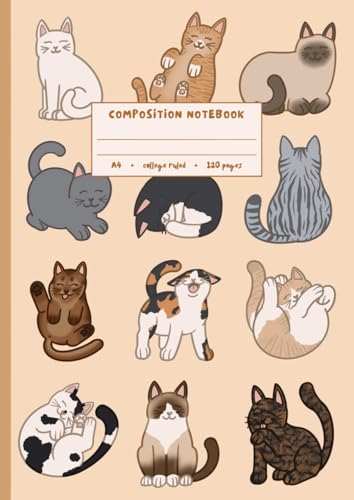 Kawaii Cat Notebook A4: Cute Hand Drawn Cats Notebook | 120 College Ruled Pages | Adorable Colourful Cat Cover | Perfect for Students, Writers, and Cat Lovers