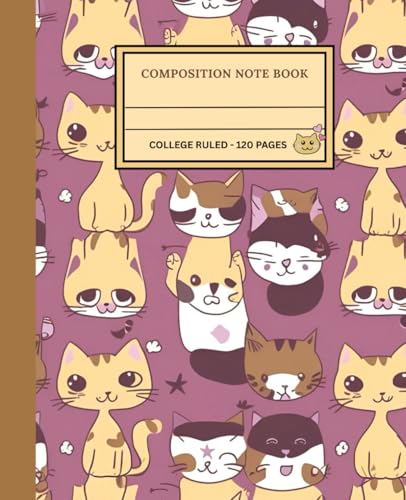 Composition Note Book: Aesthetic Funny Kawaii Cat note book - College Ruled - 120 Pages - 7.5 x 9.25 Inches | For School kids, Teens, Girls Boys, & Adults for personal use