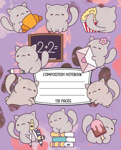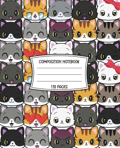 Kawaii Cat Composition Notebook: College Ruled | 110 Pages | 7.5" x 9.25" | Cute Journal for Notes and School