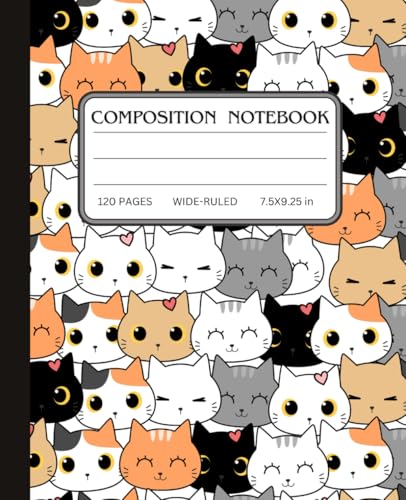 Kawaii Cat Composition Notebook: Wide Ruled Notebook | 7.5" x 9.25", 120 Pages, Adorable Aesthetic, Great Gift for School and Office