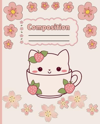 Cute cat kawaii cartoon in cup Composition Notebook: Unique Aesthetic School Supplies Composition Notebook for Kids, Boys, Girls, School & Young Teens.