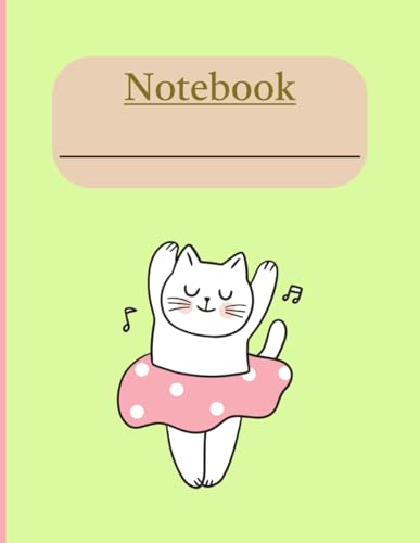 White Cat Ballerina Notebook- Kitty Ballerina -Wide Ruled Notebook for Kids/Students/Adults/A4 size notebook/kawaii cat notebook/ballet class ... cat notebook