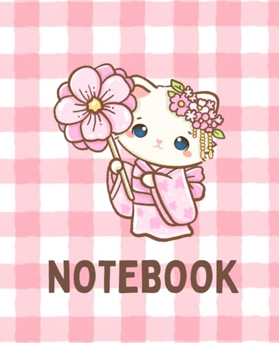 Cute Cat Notebook Cover – Pink Plaid Kawaii Design: kawaii cat notebook cover