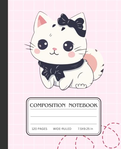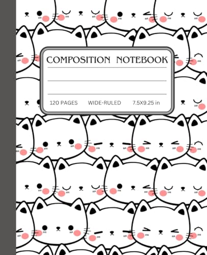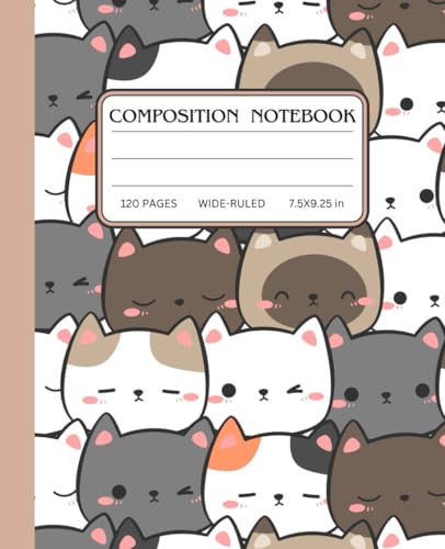 Kawaii Cat Composition Notebook: Wide Ruled Notebook | 7.5" x 9.25", 120 Pages, Cute Aesthetic Kitty Design, Perfect for School, Work, and Journaling