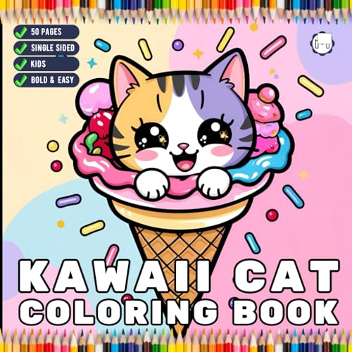 Cute Kawaii Cat Coloring Book for Kids Boys Girls Teens Youth Kawaii Kitten Coloring Sheets for Children 50 Pages Single Sided Cat Kitten Kitty Lover ... Book Stress Relief Relaxation Coloring Book