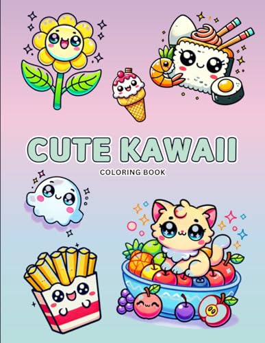 Cute Kawaii Coloring Book: Cute Mushroom, Fast Food, Animals with Fruit, Flower, Kawaii Cat and Fantasy Coloring Pages For Teens and Adults for Stress Relief & Relaxation