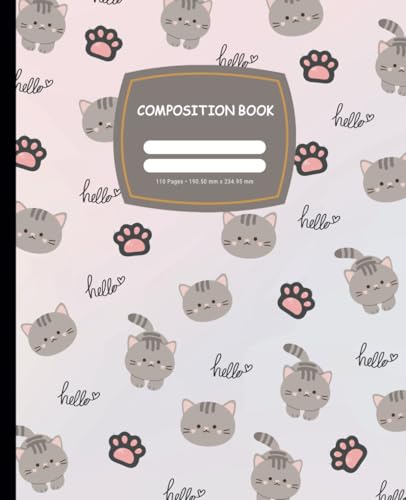 Funny Kawaii Cat Composition Notebook Wide Ruled: 110 Pages of Cute, Funny Feline Fun for School, Work or Journaling