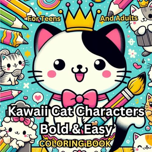 Kawaii Cat Characters - Bold & Easy Coloring Book: Cute Cat Coloring Pages For Teens And Adults