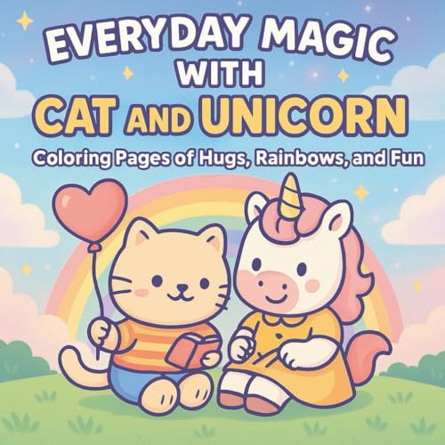Everyday Magic with Cat and Unicorn: A Kawaii Cat and Unicorn Coloring Book for Kids and Adults – Cute and Cozy Pages Filled with Everyday Activities, Friendship, Relaxation, Rainbows, and Fun
