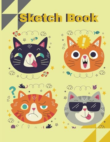 Sketch Book: Cute Kawaii Cat Funny Faces Note book for Kids, Artists & Girls - 110 Blank Pages for Drawing, Sketching, Doodling & Creative Writing