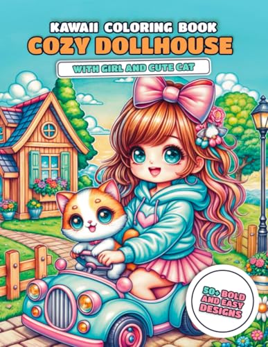 Cozy Dollhouse with a Girl and Cute Cat: Kawaii Coloring Book with Simple Illustrations for Adults and Teens Featuring Adorable Hygge Interiors. Bold & Easy Designs for Relaxation and Stress Relief.