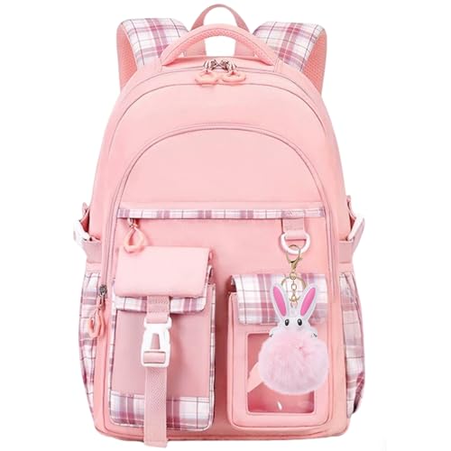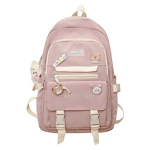 Kawaii Ryggsäck, Söt Flickor Skolväska, Estetisk Skolryggsäck Nylon Vattentät Daypack Bokväska med Kawaii Hänge för Tonårsflickor Barn Barn (Rosa)