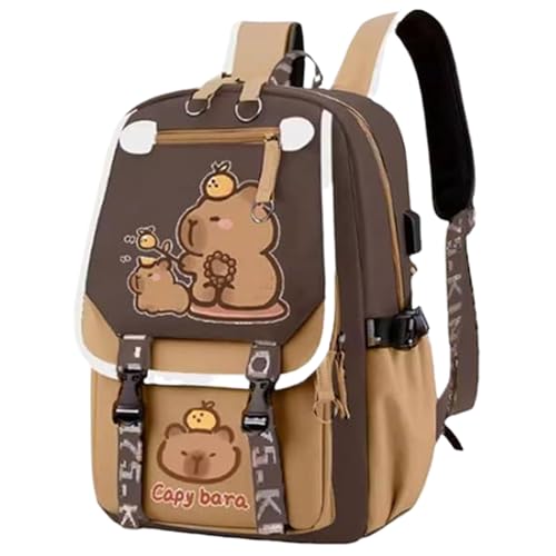CNAFGBGG Capybara ryggsäck, Kawaii-ryggsäck med flera fickor, vattentät söt skolväska med andningsbar rygg, Preppy med justerbar rem för barn flickor tonåringar.