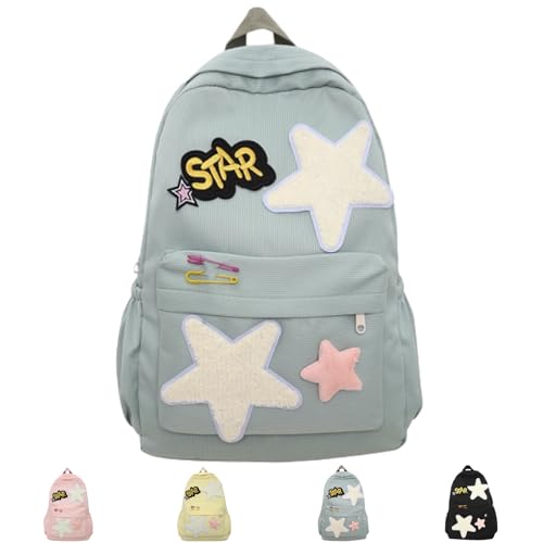 Y2k Ryggsäck, söt stor kapacitet stjärnryggsäck för skola tonåringar flickor pojkar barn kvinnor, flera fickor Kawaii Preppy estetisk ryggsäck, gRÖN, 30 * 13 * 43 cm/11.8 * 5.1 * 16.9 inches