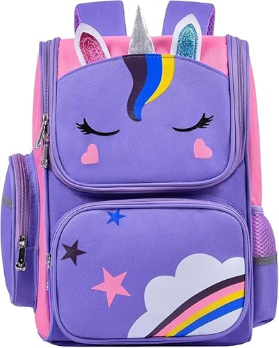 Aucuu Ryggsäck för flickor, ryggsäck för tonårsflickor, Kawaii ryggsäck, vattentät skolväskor för flickor, barnryggsäck med stor kapacitet, för utomhusbruk, skola, resor, #3 Lila-1, en storlek