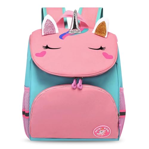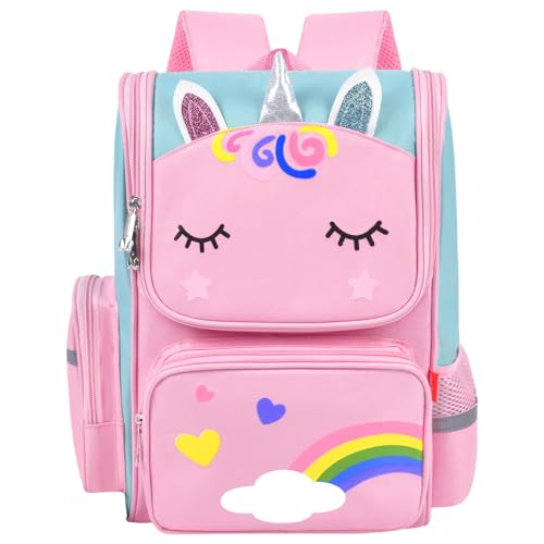Aucuu Ryggsäck för flickor, söt enhörning skolväskor, Kawaii ryggsäck, vattentät skolväskor för flickor, barnryggsäck med stor kapacitet, för grundskolan, dagis – himmelsblå och rosa, Rosa och Blå, en