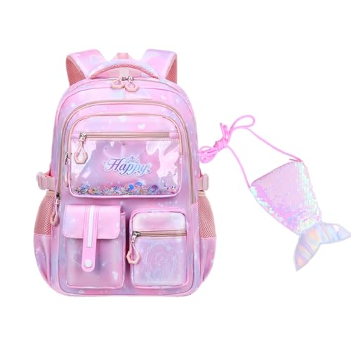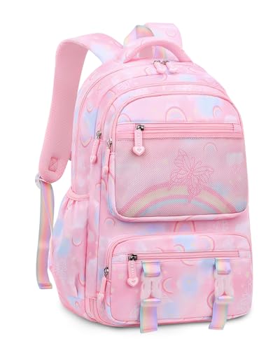 Tanou skolväska flickor skolväskor barn, stor kapacitet skolryggsäck för flickor från 1:a till 4. Klass, andningsbar Kawaii ryggsäck skola flicka med hänge, ROSA, Ryggsäck