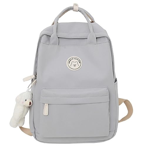 GSenhui Kawaii-ryggsäck med vit björn hängen för tonåringar flickor barn skolväskor aesthetic backpack skolväska barnryggsäckar laptop skolryggsäck, A3-grå, M
